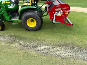 Using Redexim Verti-Drain deep tine aerators, we safely penetrate up to 12 inches, re-establishing vertical channels through the soil profile while maintaining a clean, playable surface.