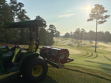 At Sports Turf Services, deep tine aeration (also known as deep tine aerification) is our flagship agronomic service for golf courses and athletic fields across Georgia and the Southeast United States. We specialize in deep compaction relief, restoring vertical drainage, and improving rootzone performance with minimal surface disruption.